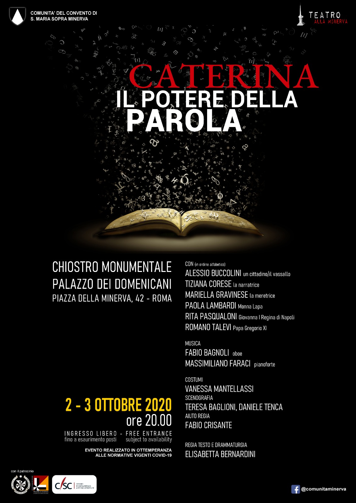 Già da qualche anno la comunità minervitana ospita questa kermesse cateriniana, coordinata dal compianto fr Angelo Di Marco, nostro confratello improvvisamente deceduto lo scorso luglio. Proprio in memoriam anche del nostro confratello, si è deciso di concludere la preparazione di questo splendido spettacolo; tutta la produzione, iniziata poco prima della pandemia da Covid 19, ha subìto bruschi rallentamenti, il rinvio delle prime date, e adesso finalmente, nei giorni del 2 e 3 ottobre, ha visto finalmente andare in scena.