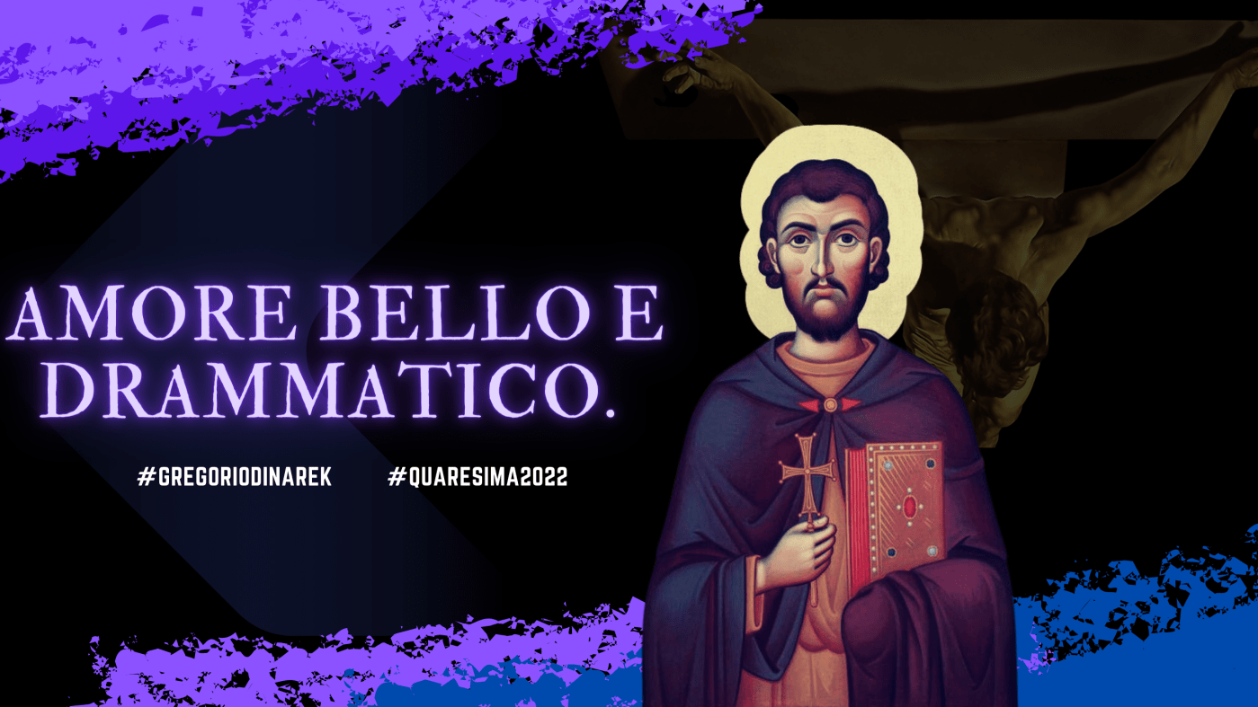 Secondo Narek questo è un debito che l’uomo non potrà mai colmare perché troppo grande il divario tra ciò che si ritiene l’autore della grazia, Dio, lo spettacolo dei doni che si effondono da essa e l’uomo che li riceve. Questi versi circa l’immagine del palo delle mani inchiodato allo “strumento di morte”, alla croce richiamano anche il senso della creazione. Infatti quella stessa mano creatrice e onnipotente è ferma su quel legno per riscattare la mia mano. Questo spezza l’audacia dell’uomo, le nostre audacie: perché la mano è strumento di bene ma anche di male. che può aprirsi per servire oppure per opporsi alla sua volontà e quindi compiere ciò che è male. Stessa idea scorre dietro l’immagine dei piedi che accompagnano i nostri passi. Inchiodati per domare quei nostri passi sbagliati, che vanno in tutte le direzioni fuorchè nella sua strada.