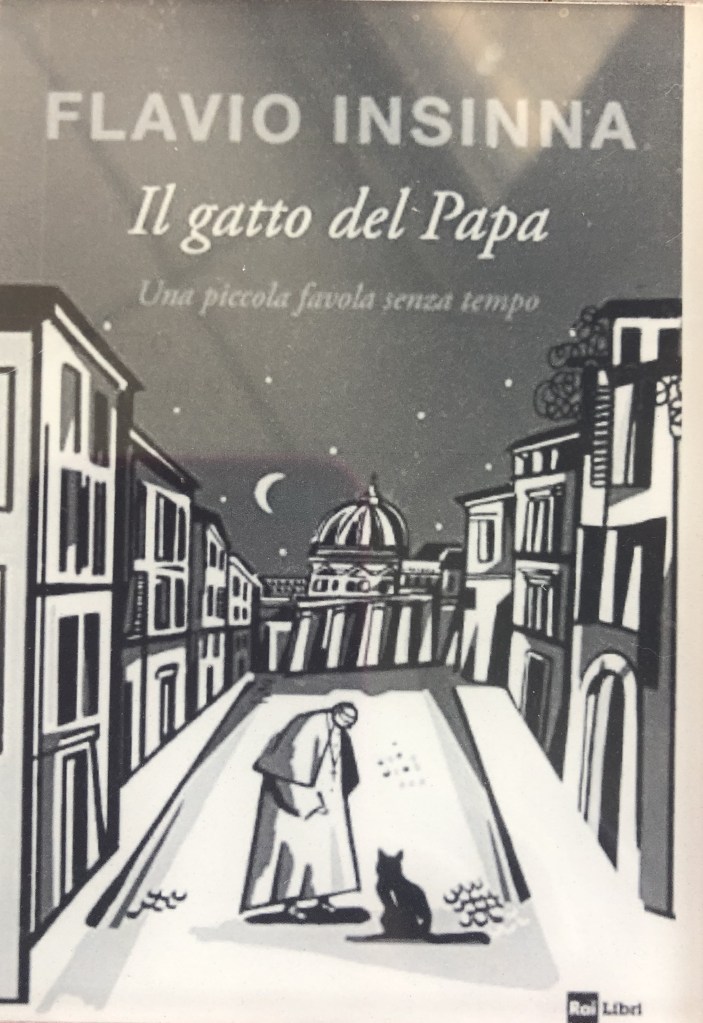 Non posso non parlarvi de Il gatto del papa di Flavio Insinna. Una piccola favola senza tempo. Edizione illustrata edito da RaiLibri. Una favola che ti avvolge. L’incontro tra il Papa malato e circondato da persone e doveri e un gatto nero che parla. Un gatto di cui non si sa il nome che diventa un compagno di pochi momenti di libertà per il Sommo Pontefice. Le sue domande mettono il crisi il Papa. Conosce altri gatti che gli fanno compagnia vicino a un ponte sul fiume Tevere e gli presentano la città. Il gatto ha poco tempo, è venuto per il Papa perché ha una missione da compiere. Un libro scritto benissimo, che si legge in un soffio. Una favola senza tempo. Da leggere! Voto 4,5 su 5