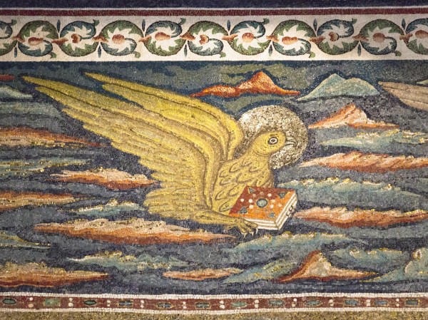 L'Aquila di San Giovanni - mosaico, VI sec. - Ravella, abside di Sant'Apollinare in Classe. di Federica Garofalo Il 27 dicembre si festeggia San Giovanni Evangelista, rappresentato nell’arte cristiana, secondo una simbologia indicata prima dal profeta Ezechiele e poi dall’Apocalisse, sotto le sembianza dell’aquila: nei bestiari antichi l’aquila è il tramite tra cielo e terra,... Continua a leggere →