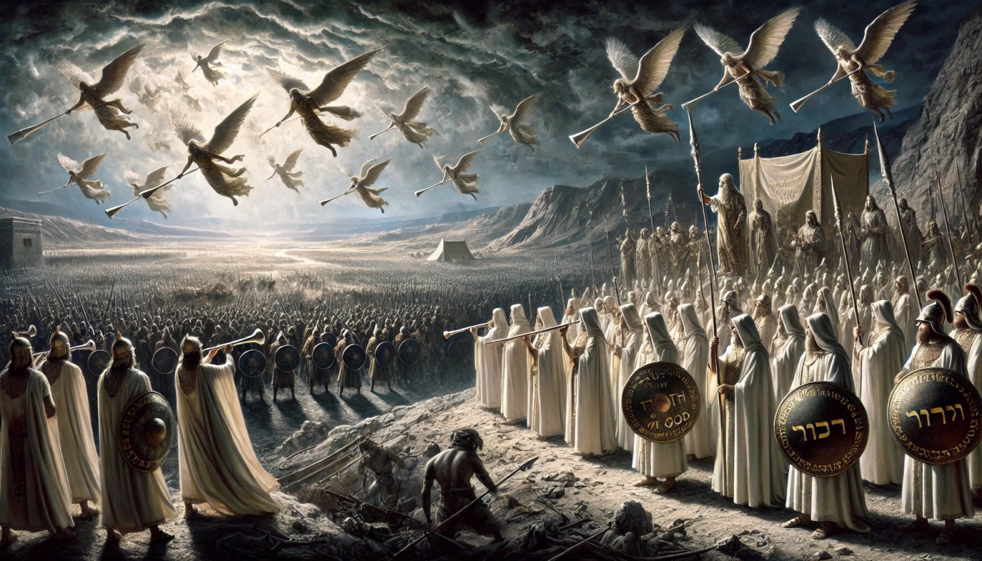L’intensa enfasi sulla purezza sacerdotale, ribadita nel testo, mostra come il clero qumranico non fosse concepito come un semplice elemento cultuale, bensì come il cuore strategico dell’evento bellico. Si legge in un punto: «Quando si formeranno le linee di combattimento di fronte al nemico, linea di fronte a linea… usciranno dall’intervallo centrale sette sacerdoti figli di Aronne, vestiti di abiti di bisso bianco» (VII,9-10), sottolineando la necessità che i sacerdoti si trovino fisicamente in mezzo all’esercito, pronti a suonare le trombe e a dirigere i guerrieri. Il testo ordina anche di mantenere una distanza di circa mille cubiti dall’accampamento quando si tratta di impurità, perché «con le loro truppe ci sono angeli santi” (VII 6), a suggello dell’idea che forze celesti e terrene agiscano insieme.