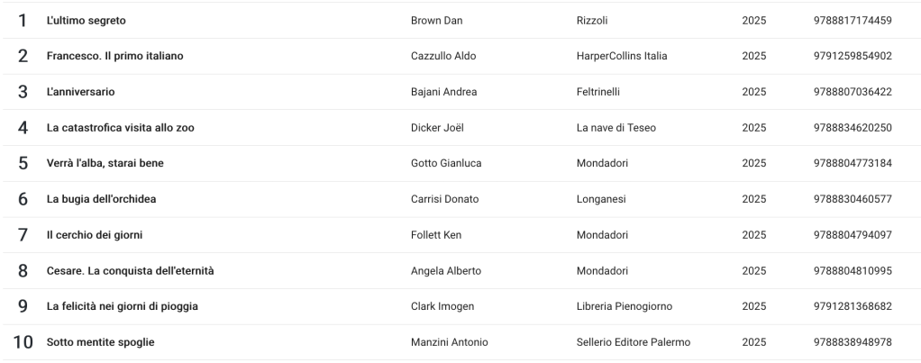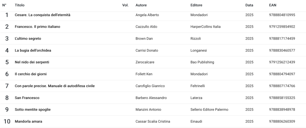 Classifica libri dicembre 2025