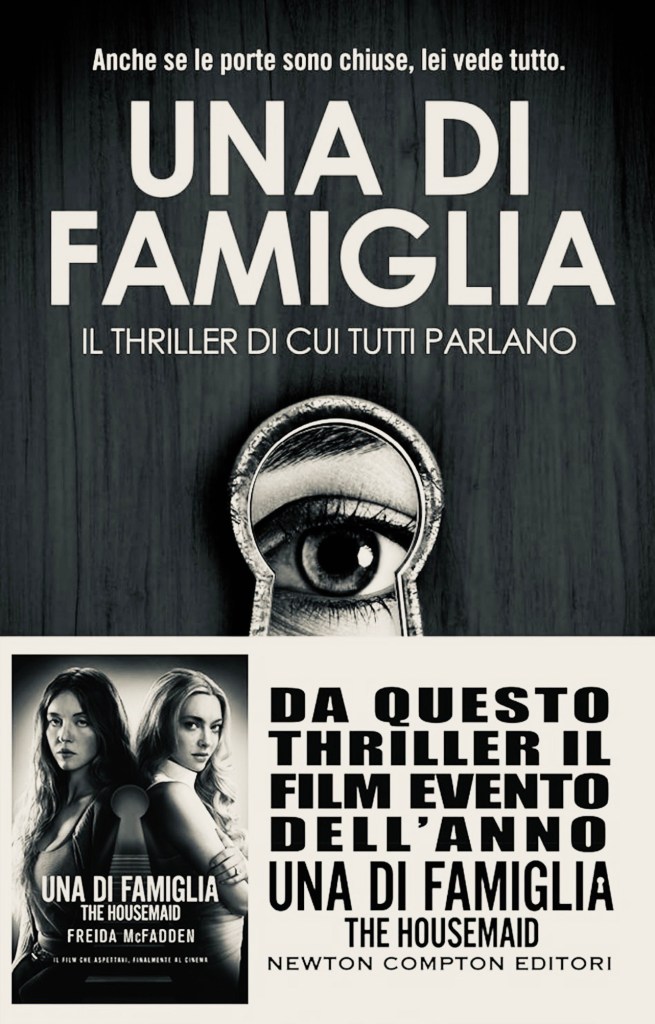 Per i gialli, vi parlo di Una di famiglia: è un thriller psicologico che cattura il lettore fin dalle prime pagine. Dal libro è tratto il film The Housemaid, film del 2025 diretto da Paul Feig e scritto da Rebecca Sonnenshine, al cinema dal 1° gennaio. La protagonista, Millie, è una donna con un passato difficile che accetta un lavoro come governante in una villa lussuosa ma piena di misteri. Quello che inizialmente sembra un rifugio sicuro si rivela un ambiente inquietante, dove piccoli dettagli e strani comportamenti degli altri abitanti aumentano la tensione. La scrittura è scorrevole e mantiene alta l’attenzione grazie a colpi di scena graduali e a un ritmo che alterna momenti di suspense a pause riflessive. Millie è un personaggio ben costruito: fragile ma determinata, tormentata dal passato ma resiliente, costretta a confrontarsi con minacce esterne e conflitti interiori. Il romanzo esplora temi come fiducia, paura e dinamiche familiari complesse, mostrando come i segreti possano influenzare le relazioni e la vita quotidiana. Una di famiglia è una lettura avvincente, ideale per chi ama i thriller psicologici con mistero e tensione costante. Voto 5 su 5