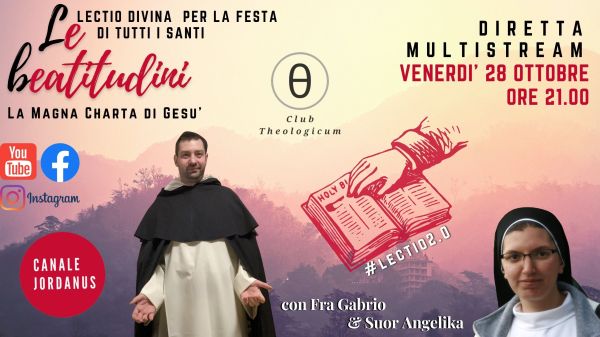 Le beatitudini. Stupende. Una pagina eterna ma ancora da riscoprire.La Magna Charta di Gesù per noi.Una meditazione di fr Gabrio e Suor Angelika su questo il prossimo venerdì 28.10.22 ore 21.00 Su Youtube: Canale Jordanus https://www.youtube.com/watch?v=K8z60mszegg Facebook: Amici del Club Theologicum https://www.facebook.com/events/880145813144670 Instagram: gabriogiordano